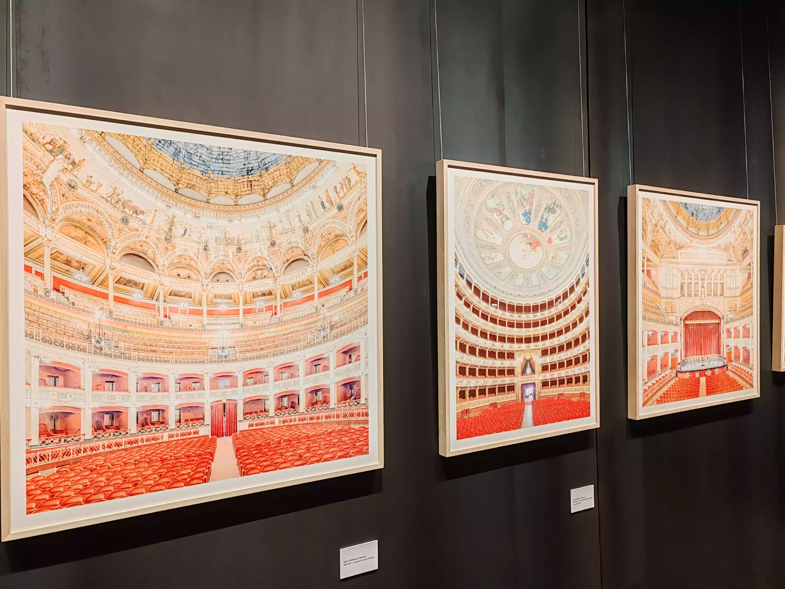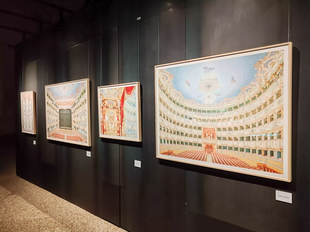 Il Teatro Olimpico di Vicenza e i teatri di Sabbioneta e Parma – che segnano il passaggio dai teatri di corte agli edifici veri e propri -, il Teatro alla Scala di Milano, il Teatro San Carlo di Napoli, il Teatro La Fenice di Venezia, il Teatro Regio di Torino, il Teatro Argentina di Roma, il Teatro della Pergola di Firenze, il Teatro Massimo di Palermo, unitamente ad alcune architetture che testimoniano la vocazione “teatrale” di certa architettura italiana, come la Basilica Palladiana, la Reggia di Venaria, quella di Stupinigi, la Reggia di Caserta, Palazzo Grimani a Venezia, sono alcuni dei soggetti scelti dall’artista.